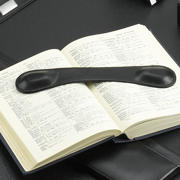 Features: Smooth brown leather with stitched pebble-grain leather trim. Brass letter opener with leather handle. 4" x 6" leather memo box. Leather letter holder. Business card holder. Pen cup.