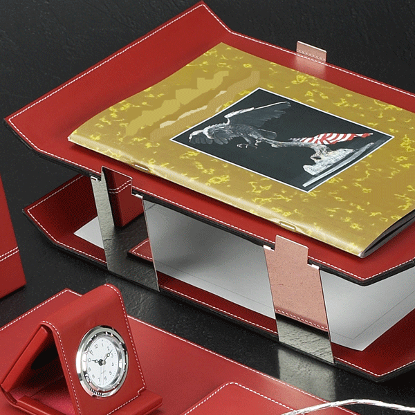 Red Leather Desk Pad Blotter Collection with Chrome-Plated Brass Accents