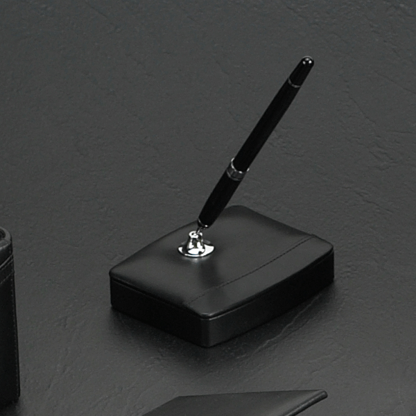 Features: Reptile-textured genuine leather. Set includes: Pen/pencil cup (pens not included) and notepad. Smooth leatherette surfaces on notepad and inside pen/pencil cup. Comes in additional colors and textures; please call for details on production time for custom colors.